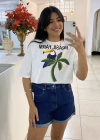 T-shirt cropped algodão estampado